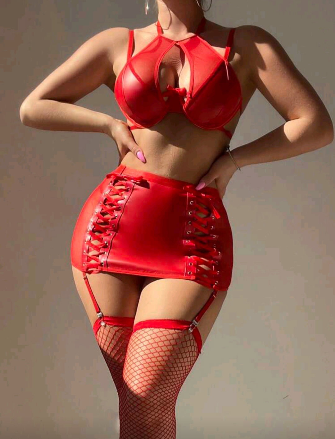 Incluye corpiño, falda, less, medias